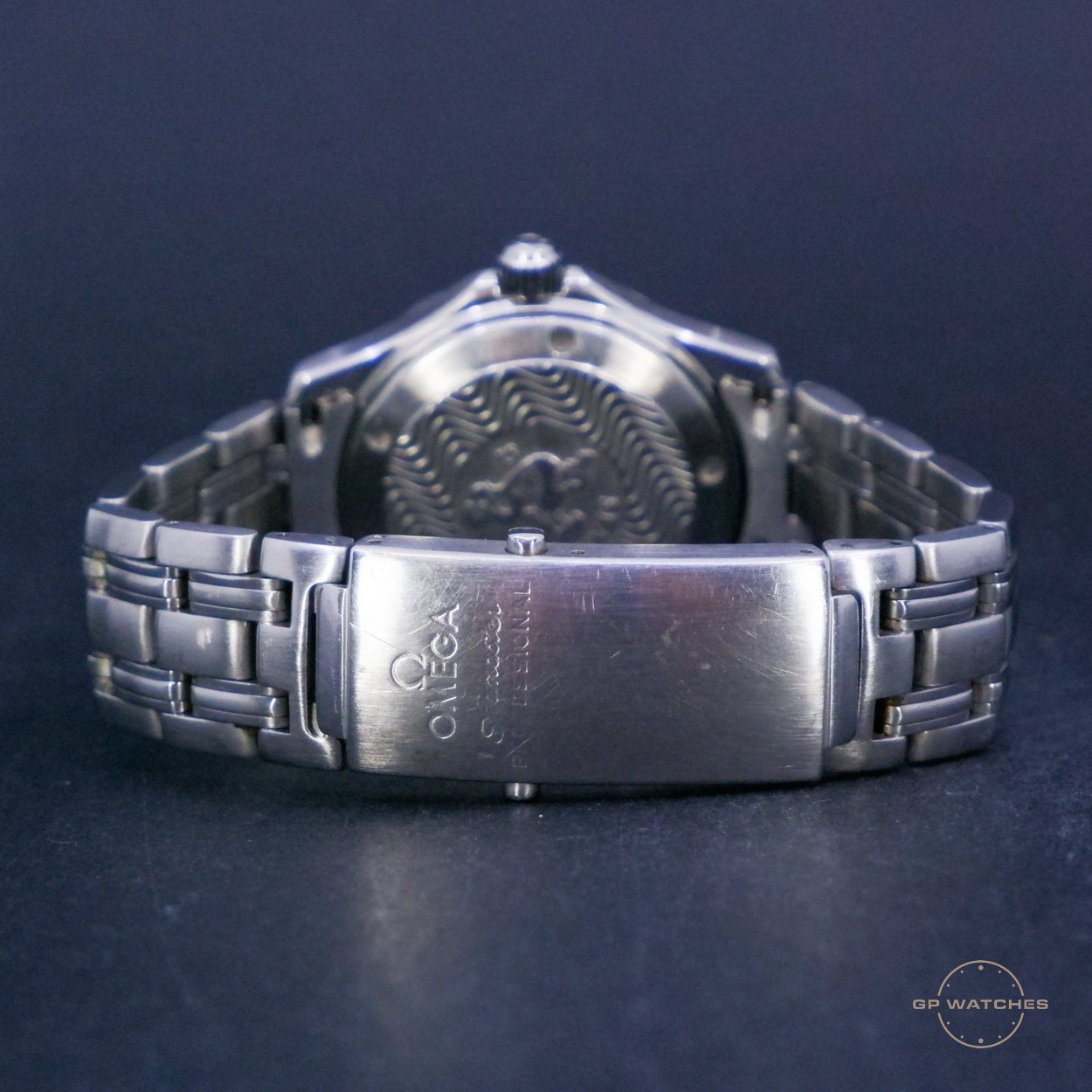Omega Seamaster 300m quartz. Den populære originale james bond. Her i den lidt mindre udgave på 36 mm. En god daily beater i fin stand taget alderen i betragtning. Det har masser af patina og charme. Har lige fået skiftet batteri og er klar til mange års slid. Uret er fra 1990’erne