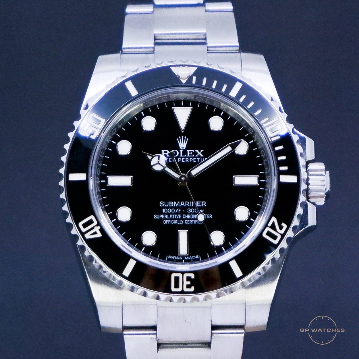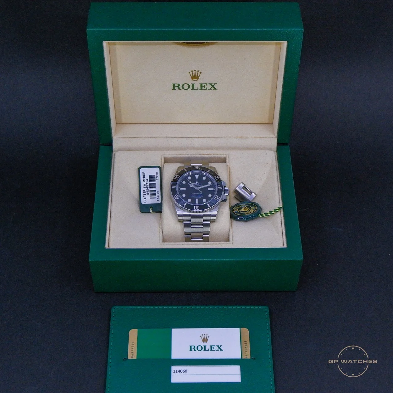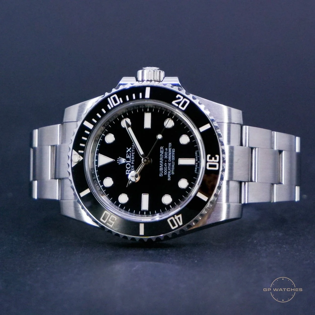Rolex Submariner 114060. Den ældre reference med maxikasse og i 40 mm, modsat den nyere reference 124060 som er 41 mm. Uret fremstår i super fin stand. Uret kommer med boks og papirer fra EU fohandler 2015.