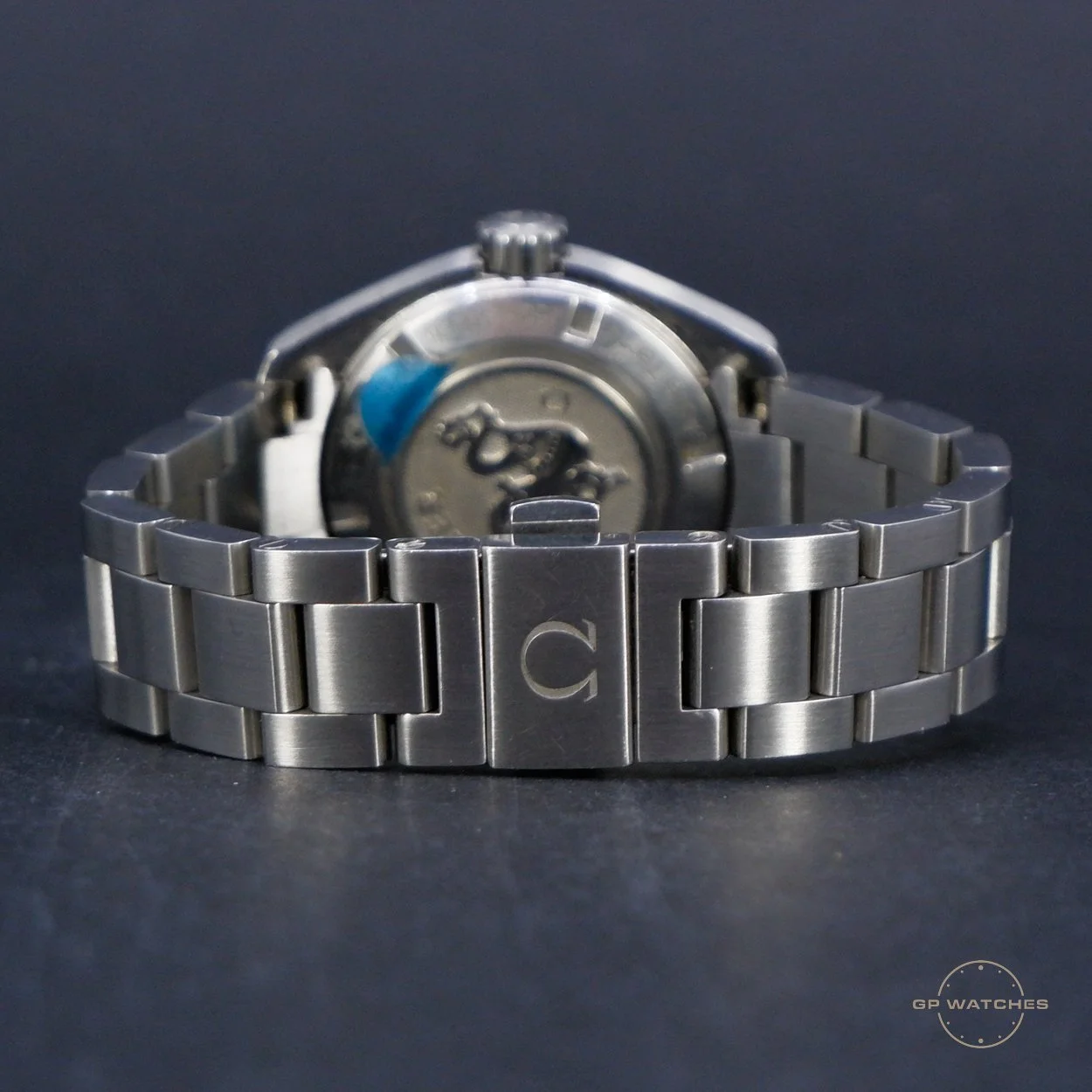 Omega Seamaster Aqua terra Quartz. En rigtig fin damemodel i 30 mm. Uret kommer med den flotte hvide perlemors skive med diamanter. Kommer med boks og papirer fra 2014. Har lige fået skiftet batteri og er blevet tryktestet også.