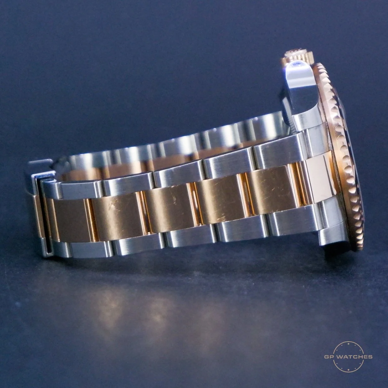 Rolex GMT-Master II 126711CHNR 2023. Den aktuelle udgave af den eftertragtede “Rootbeer” 40 mm Rosegold/stål i den aktuelle udgave. Fremstår upoleret, men har lidt små ridser og hairlines. Kommer som et fuldt sæt med boks og papirer fra december 2023.