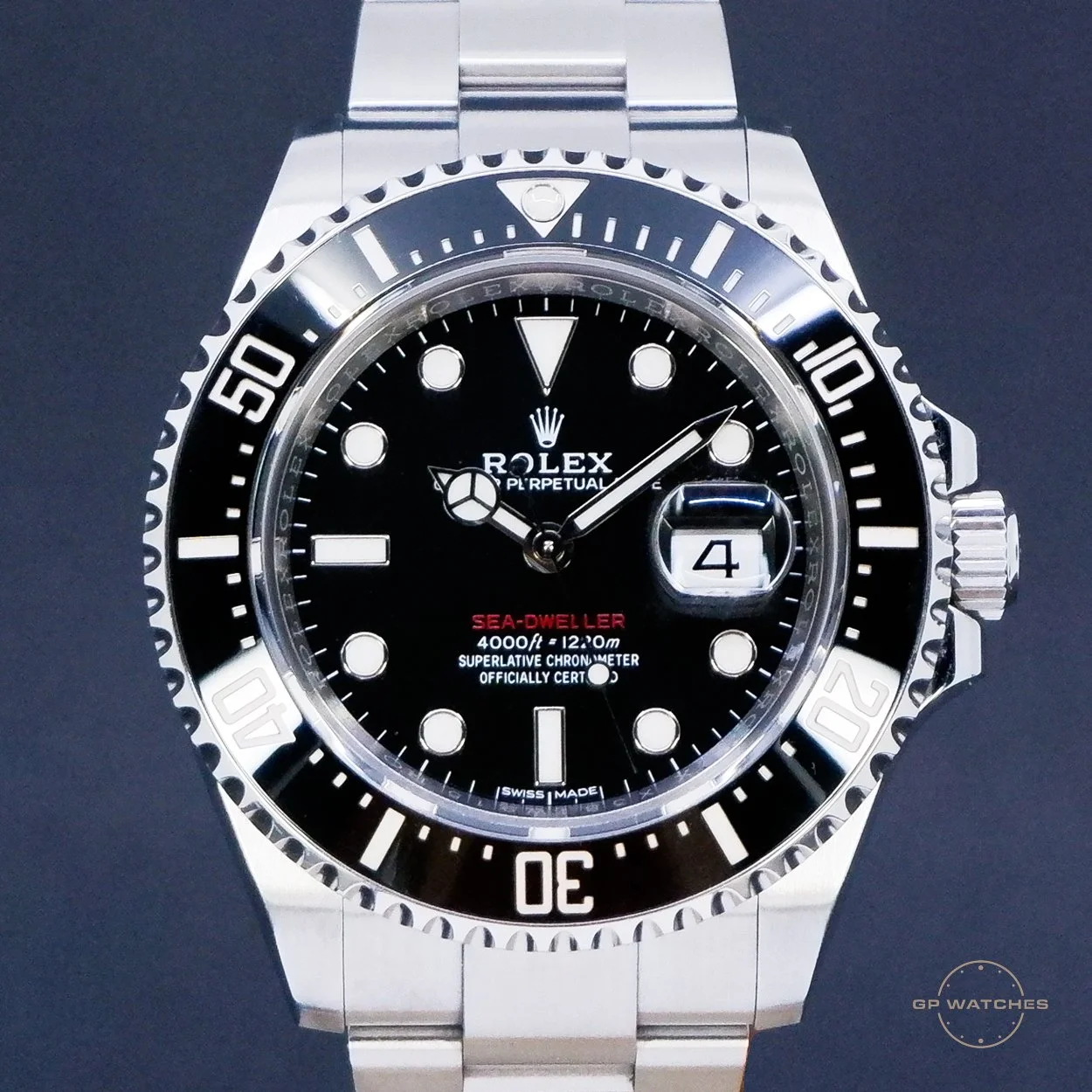 Rolex Sea-Dweller 126600 fra 2018. Uret fremstår i rigtig god stand. Dette er den første og lidt mere sjælden version med mk1 skive. Uret kommer med boks og papirer. Et godt bud på et investeringsur, da de kun er produceret med den skive i 2017-2018.