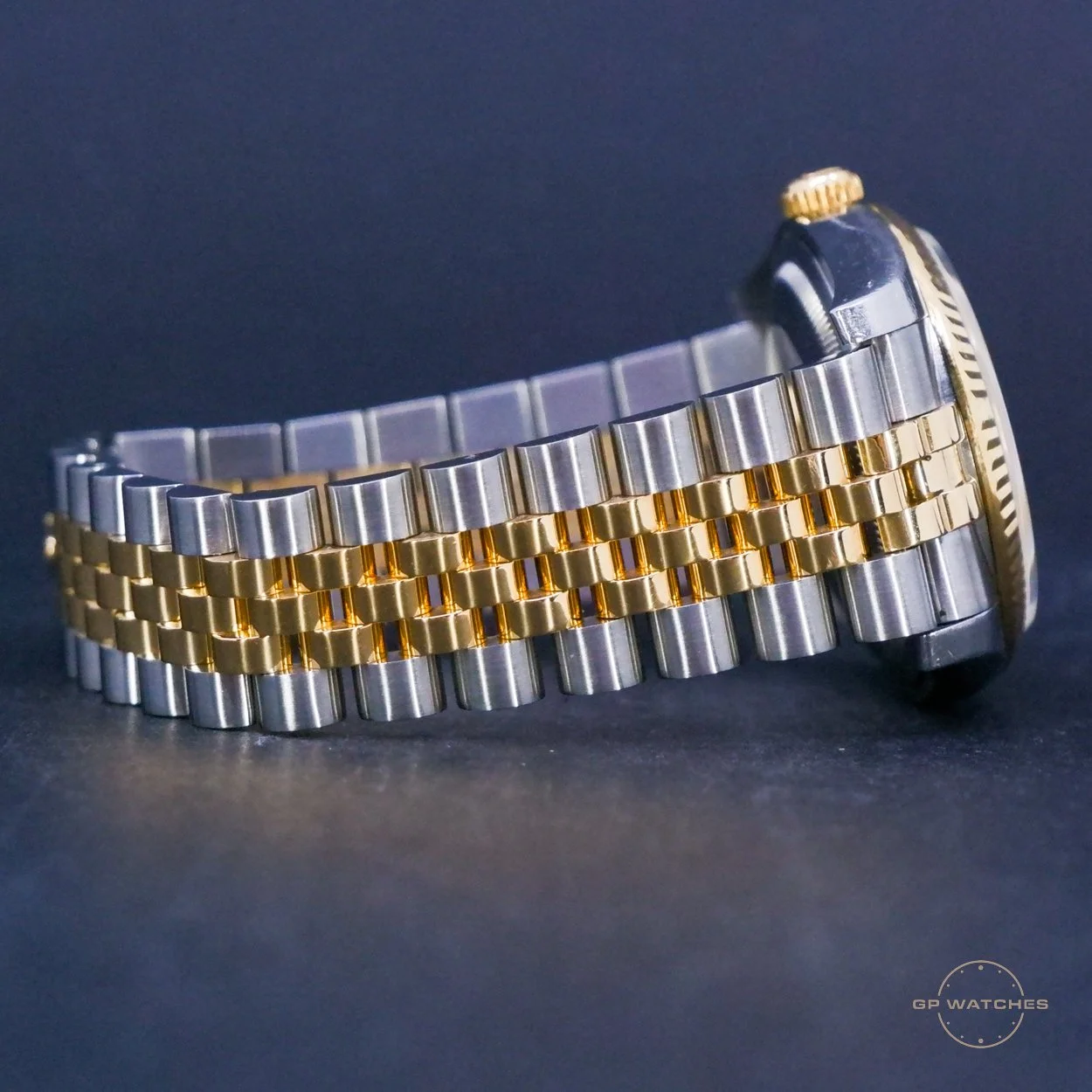 Rolex Datejust 116233. Det populære datejust i guldstål 36 mm med den skjulte lås. Denne model er med den smukke champagneskive med diamanter. Uret fremstår i rigtig flot stand og kommer med boks og papirer fra 2011.