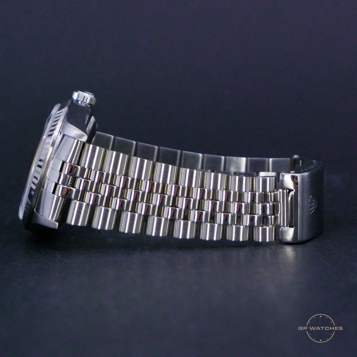 Rolex Datejust 16234 i 36 mm. Den helt klassiske datejust med sølv skive og den smukke jubileelænke. Uret fremstår i næsten ny stand og er en af de sidste 5-cifrede. kommer med boks og papirer fra 2004.