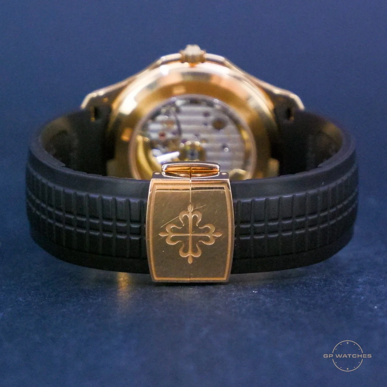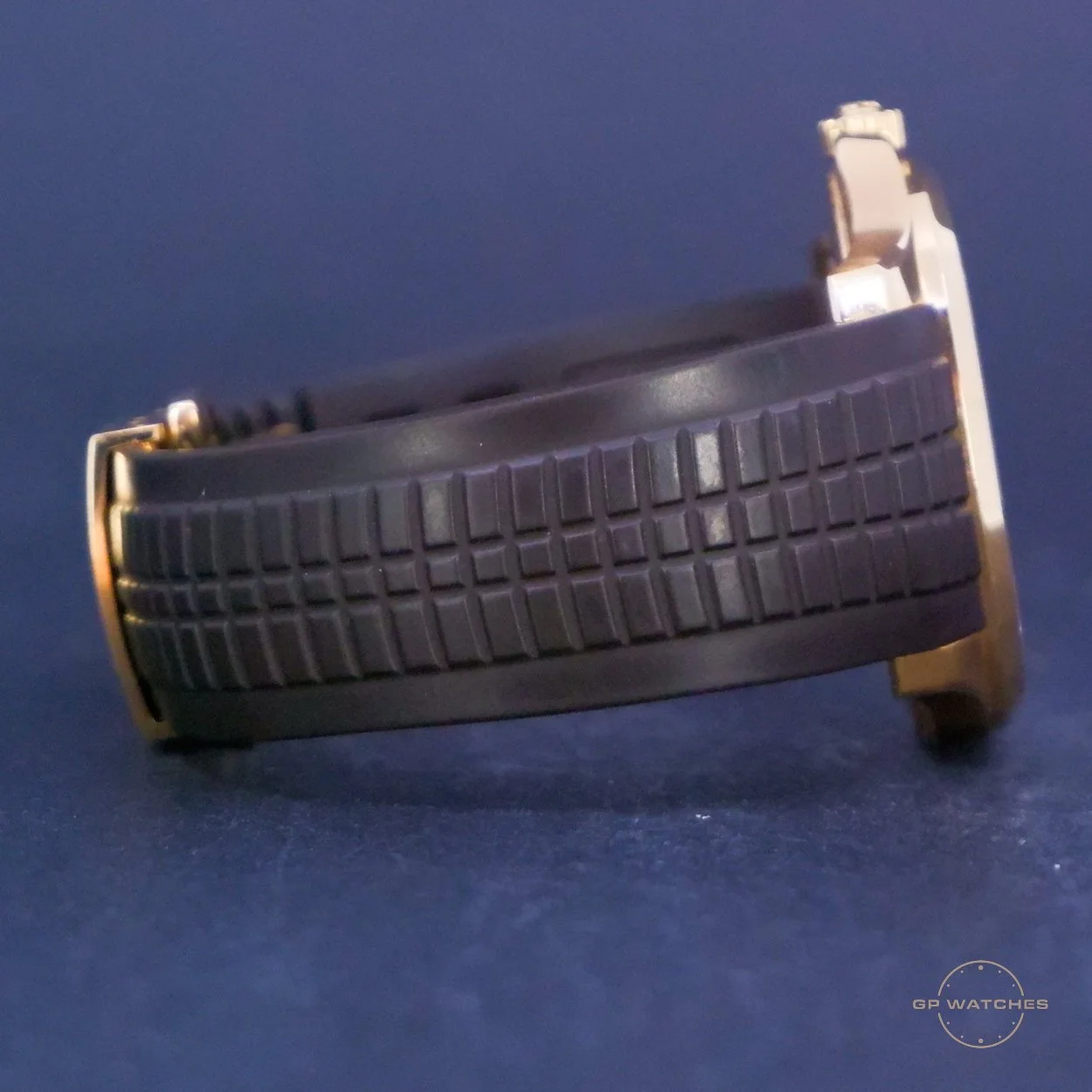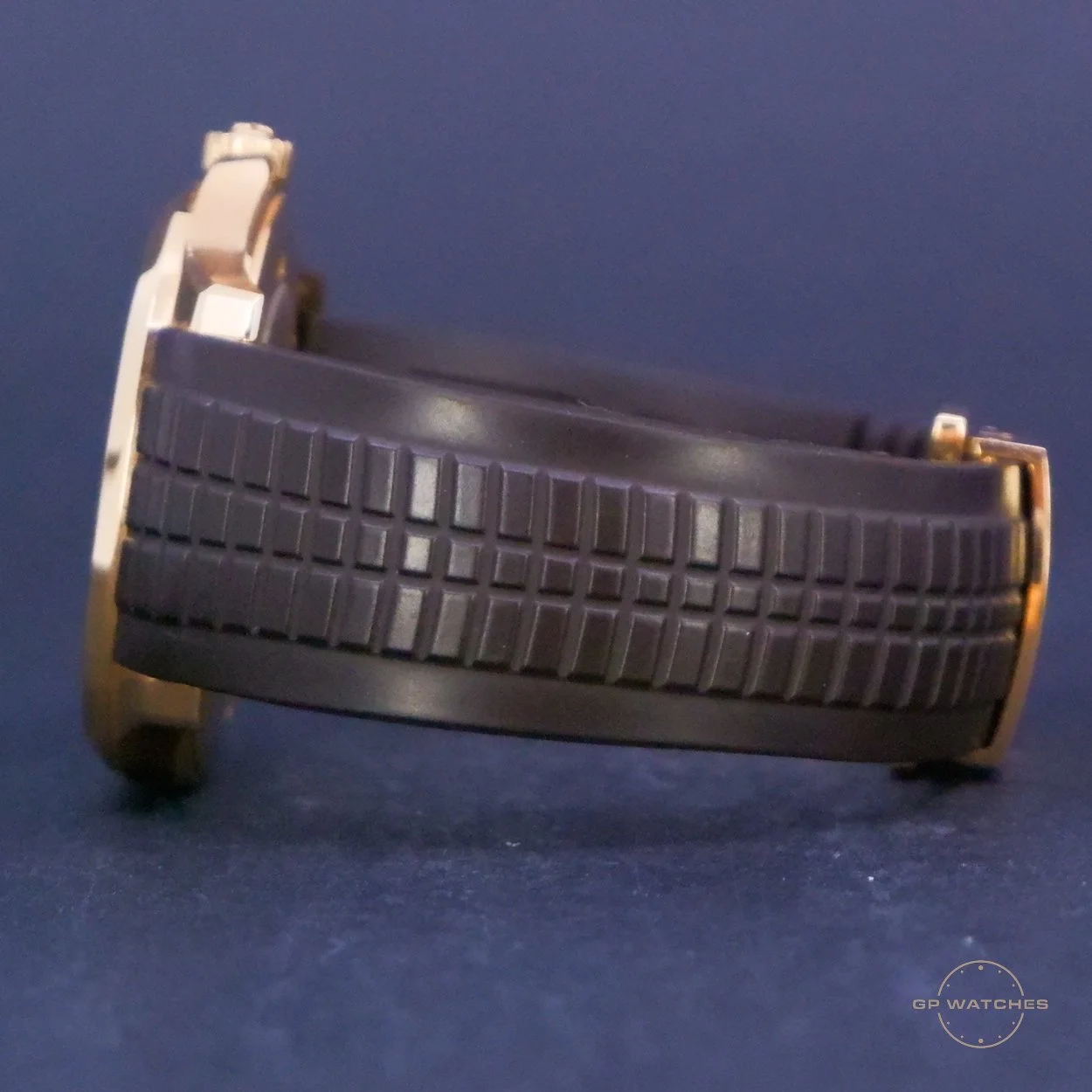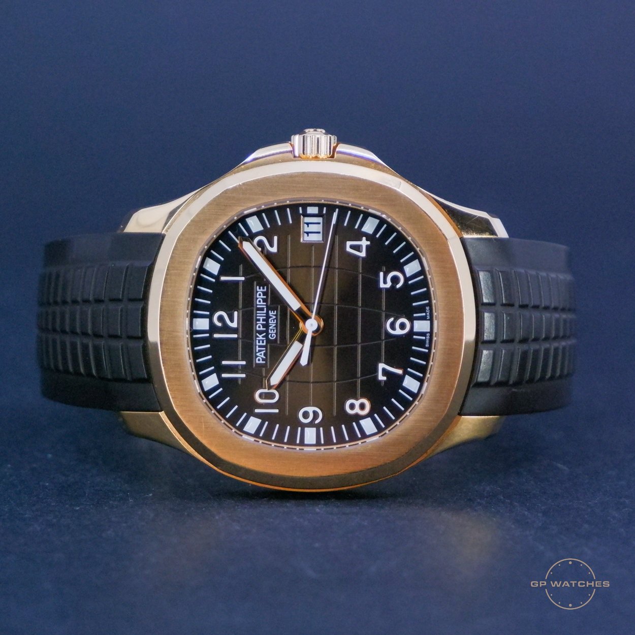 Patek Philippe Aquanaut 5167R i 18 kt. roséguld – en af de mest eftertragtede og ikoniske modeller fra Patek. Uret måler 40 mm og kommer med den karakteristiske brune skive og matchende kompositrem, som giver et sporty men samtidig ekstremt elegant look.