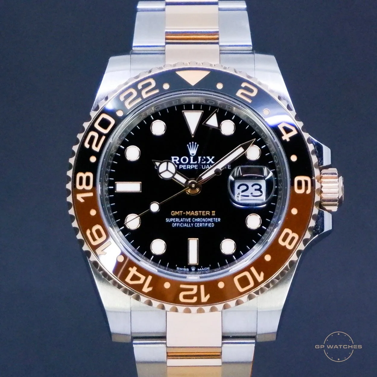 Rolex GMT-Master II 126711CHNR 2023. Den aktuelle udgave af den eftertragtede “Rootbeer” 40 mm Rosegold/stål i den aktuelle udgave. Fremstår i rigtig flot stand. Kommer med yderboks, inderboks, hangtag og certifikat fra 2023. Stadig med garanti fra Rolex indtil 2028.