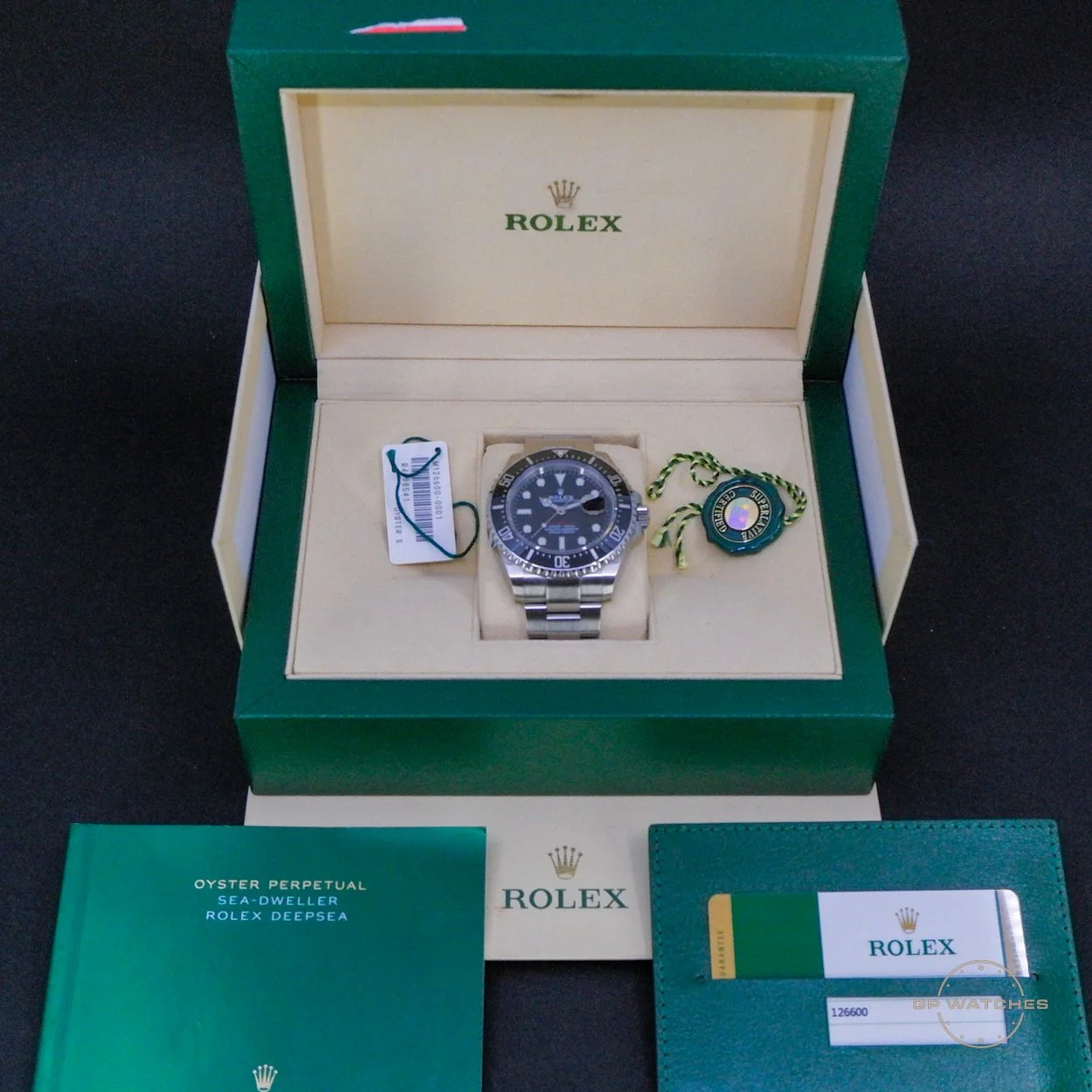 Rolex Sea-Dweller 126600 fra 2018. Uret fremstår i rigtig god stand. Dette er den første og lidt mere sjælden version med mk1 skive. Uret kommer med boks og papirer. Et godt bud på et investeringsur, da de kun er produceret med den skive i 2017-2018.