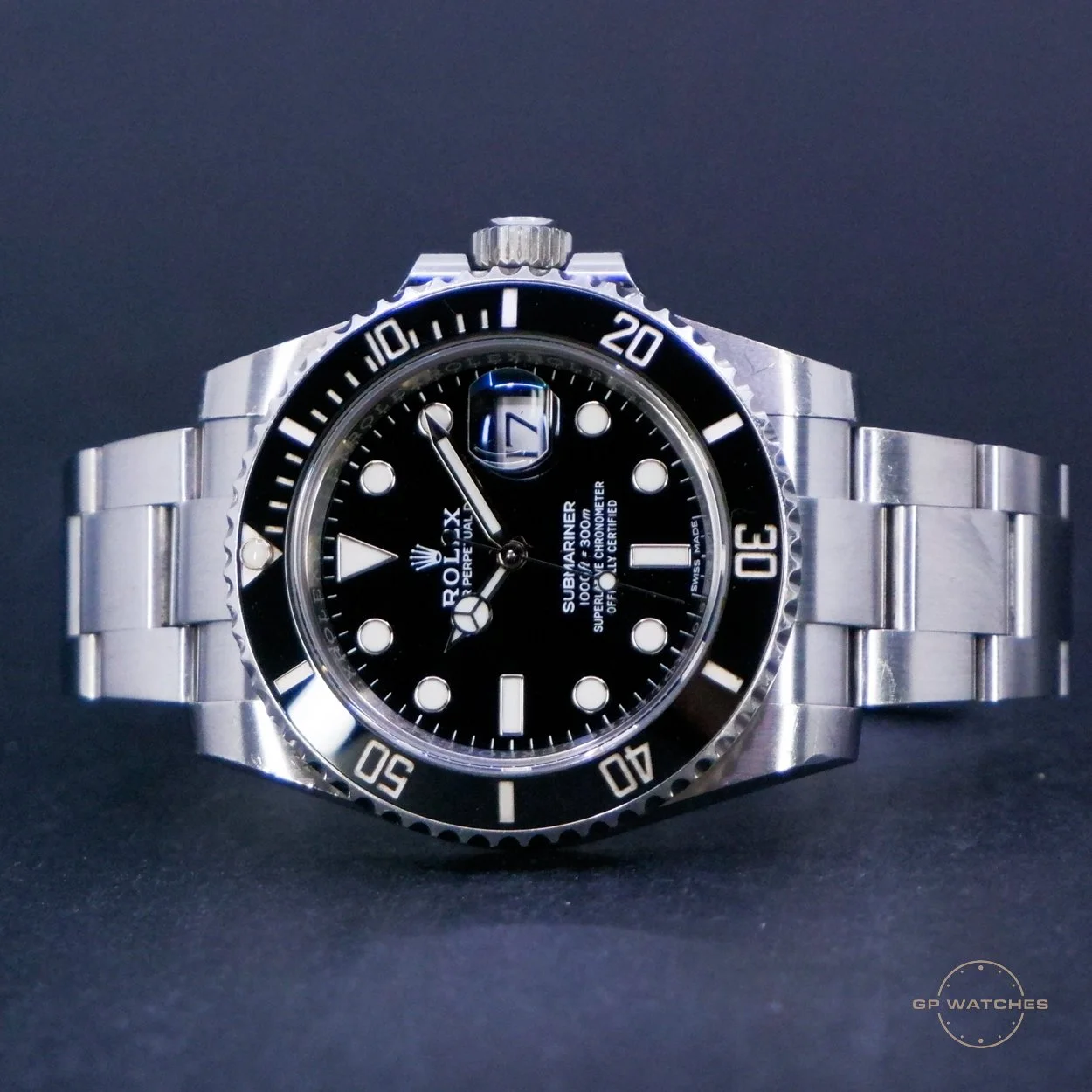 Rolex Submariner 116610LN. Den ældre reference med maxikasse i 40 mm, modsat den nyere reference 126610 som er 41 mm. Uret fremstår i upoleret stand, men kunne godt bruge en let polering. Kommer med yderboks, inderboks, booklet og certifikat fra Japan 2019.