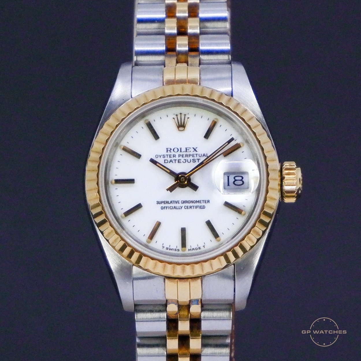 Rolex Datejust 69173 i 26 mm. Et af de mindste, men ikke mindst meget charmerende datejust som Rolex har lavet. En rigtig populær model og især med den smukke hvide skive. Uret er i god stand og kommer med boks og papirer fra 1991.