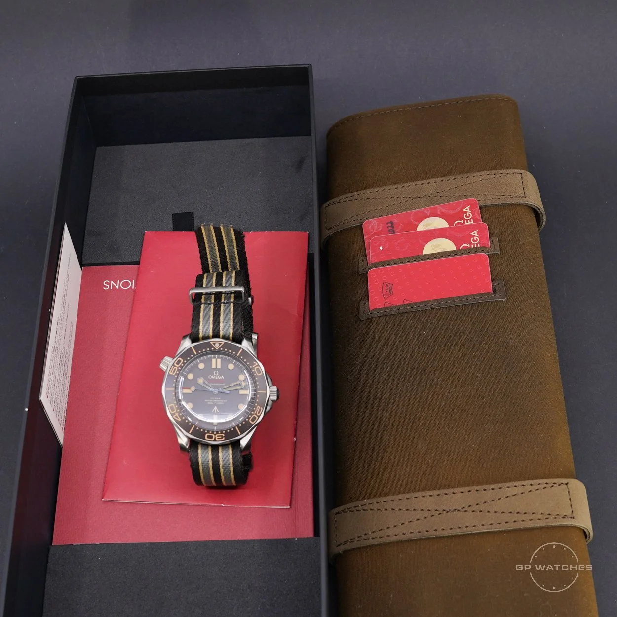 Omega Seamaster Diver 300M 007 edition 42 MM. Et rigtig cool omega seamaster lavet til James bond filmen “No time to die” og er udført i fuld titanium. Så det vejer ikke ret meget og sidder rigtig godt på håndleddet. Derudover er den lidt mere slank ift. en standard seamaster og har blandt andet også domed safirglas. Uret fremstår i rigtig flot stand og kommer som et fuldt sæt med boks og papir fra 2022.