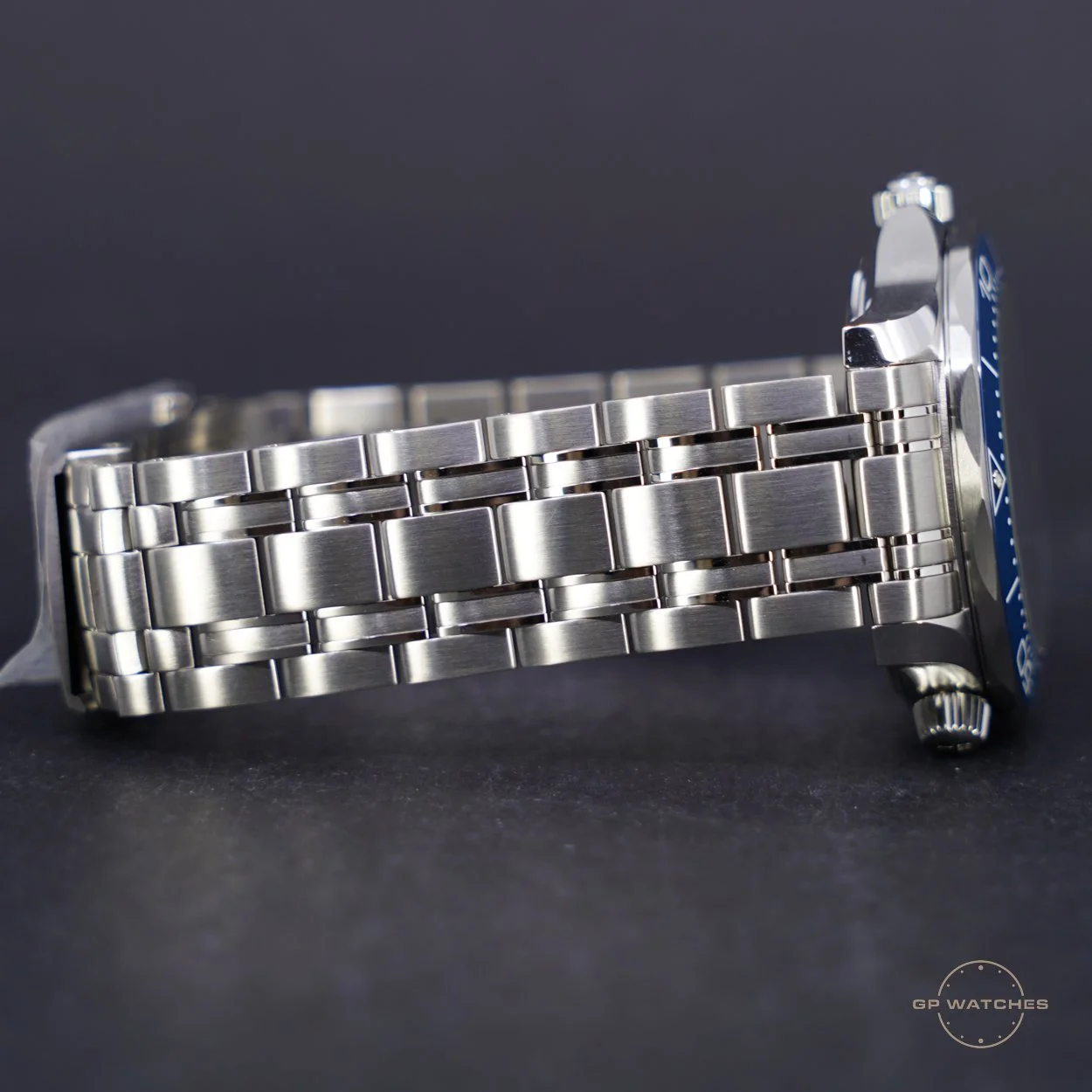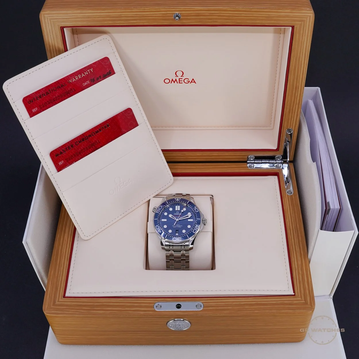 Omega Seamaster Diver 300M 42 MM. Den aktuelle model fra Omega og her med den eftertragtede blå skive og bezel. Uret er fabriksnyt og kommer med boks og papirer fra 2026. Den aktuelle listepris er 50.600 kr. Så her er muligheden for at få et helt nyt ur til en rigtig skarp pris.
