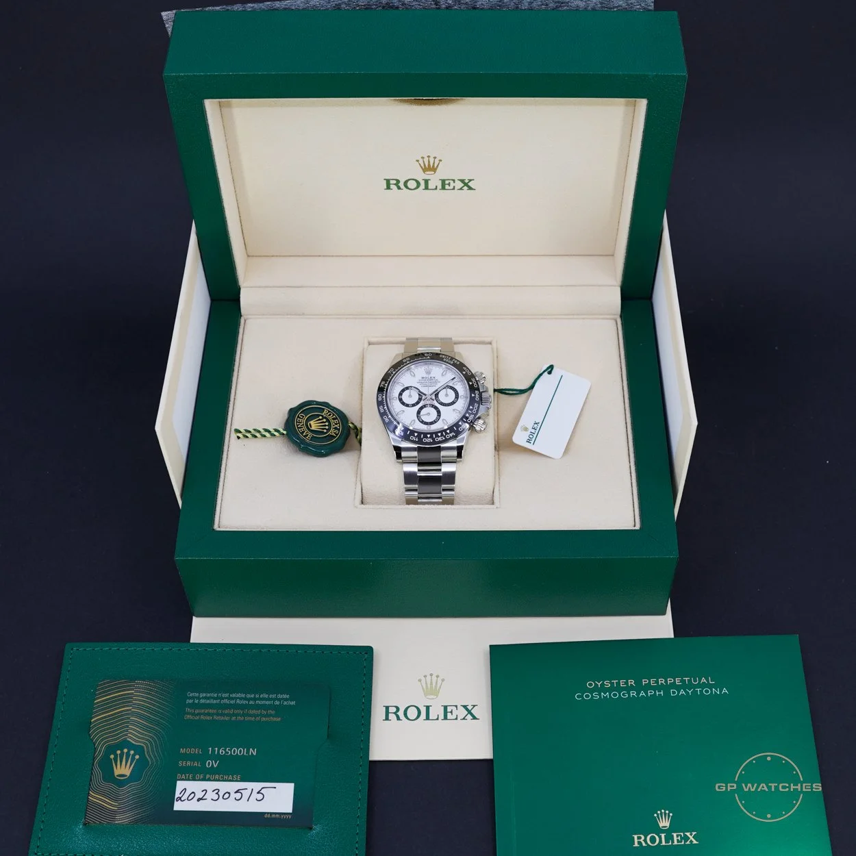 Rolex Daytona 116500LN med bokse og papirer fra 2023. Fremstår absolut ubrugt og har aldrig været tilpasset eller andet. Et godt bud på et godt investeringsobjekt da uret er ubrugt og kommer som fuldt sæt. En absolut klassiker og det ypperste indenfor nyere sportsmodeller i stål.