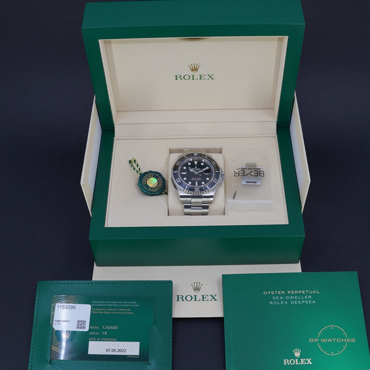 Rolex Sea-Dweller 126600 fra 2022. Uret fremstår i næsten ny stand. Kommer med det nye værk med 70 timers gangreserve og en præcision på +-2 sekund pr døgn. Kommer med alt tilbehør og solgt fra tysk forhandler. Der er Worldwide garanti fra Rolex indtil maj 2027