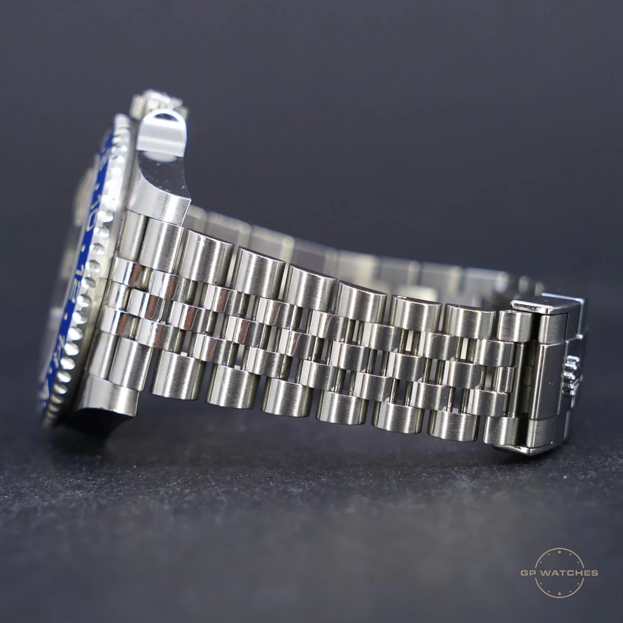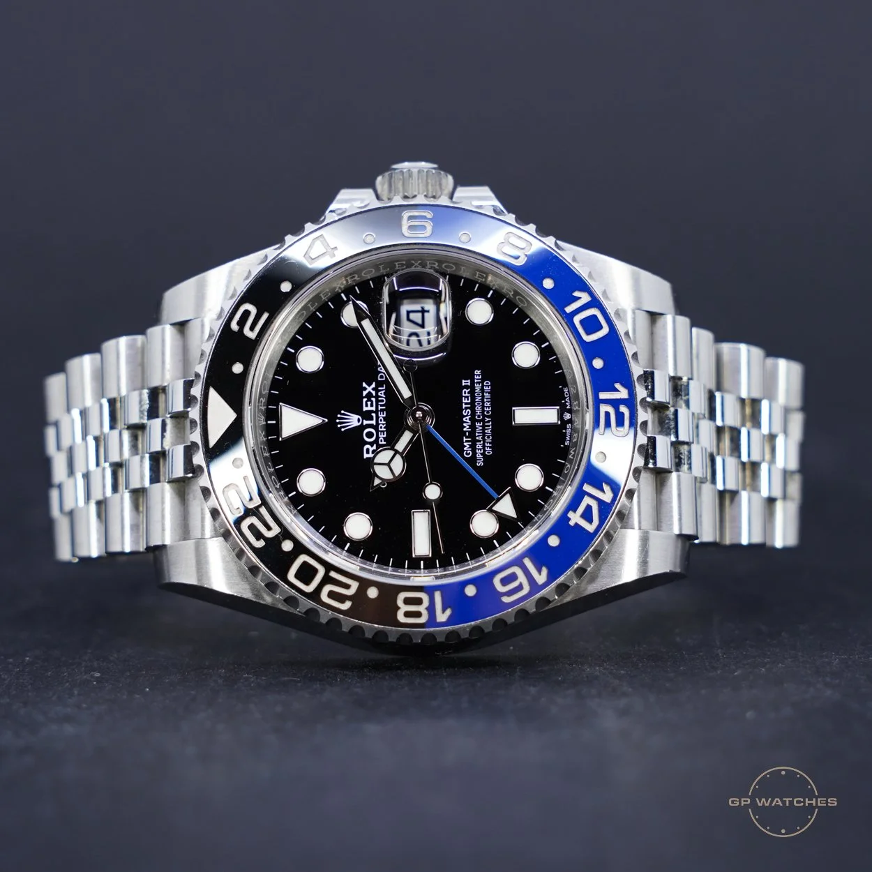 Rolex GMT-Master II 126710BLNR 2022 jubilee. Den aktuelle udgave af den eftertragtede “Batman” med det nyeste urværk og opdateringer. Uret fremstår i fin stand med lidt små hairlines. Uret kommer med boks og papirer fra 2022. ubrugt oysterlænke kan medfølge for 10.000 kr.
